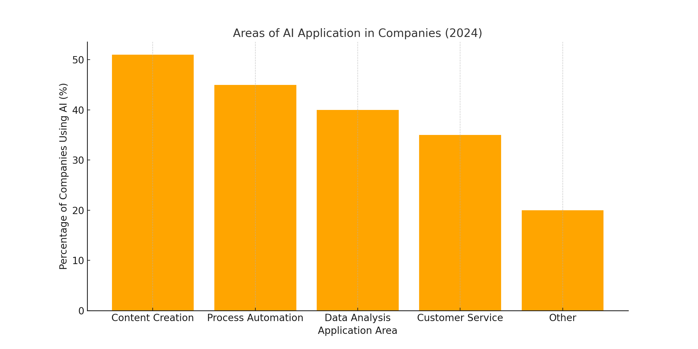 As shown in Graph 6, content creation has become the leading application area for AI in companies (51%), followed by process automation (45%), data analysis (40%), and customer service (35%). This distribution reflects how AI is reshaping not just internet content, but also how businesses operate and deliver value to customers.