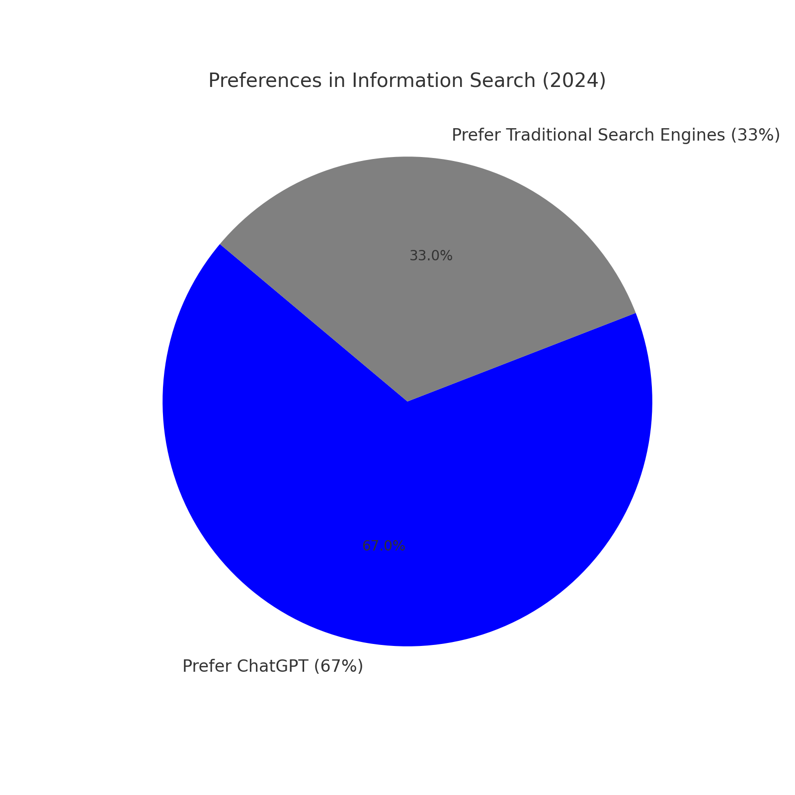 - User behavior is shifting: 67% of users now prefer ChatGPT over traditional search engines like Google for certain queries