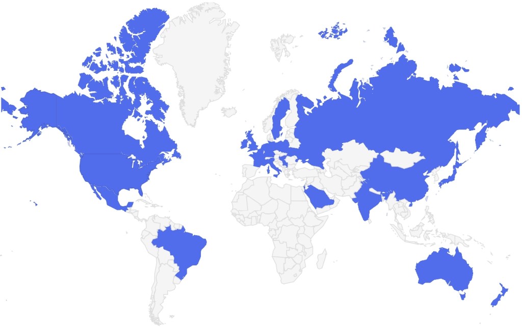Our audience spans a wide range of countries, including: USA, Ukraine, Serbia, Ireland, Canada, Brazil, Saudi Arabia, United Kingdom, Germany, Sweden, China, Russia, Israel, France, Belgium, India, Taiwan, Singapore, Poland, New Zealand, Netherlands, Mexico, Japan, Italy, Hungary, Australia.