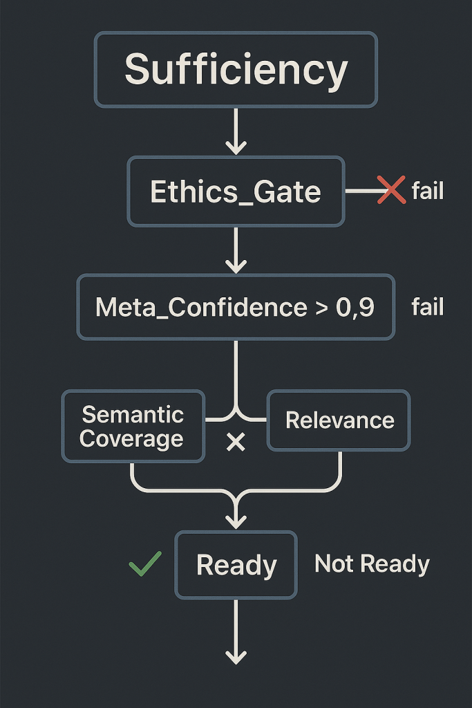 Sufficiency = Ethics_Gate × Meta_Confidence × (Semantic_Coverage × Relevance)