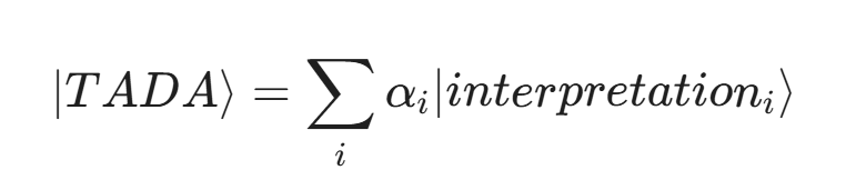 (Where |TADA⟩ is the quantum state of the system, Sum is the sum of all possible interpretations, and αi is the probability that the observer will choose this specific meaning. Note: Dirac notation).